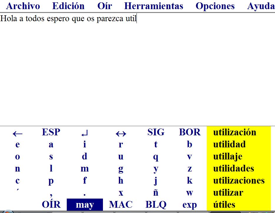 Un programa que me han recomendado es el DASHER aunque su funcionamiento me parece un tanto complejo y todavía no tengo claro si tiene salida de voz o no.